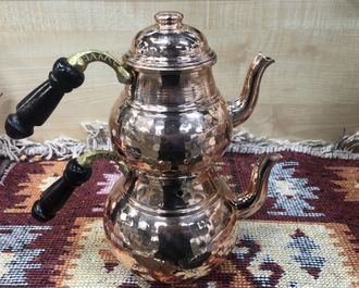 Чайник медный двойной (çaydanlık), толстостенный, средний, цвет «медь», Турция