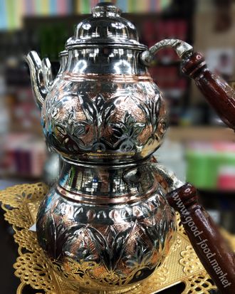 Турецкий чайник Çaydanlık (чайданлык) состоит из 2-х чайников: верхнего маленького (заварочного) и нижнего большого (для кипятка).
